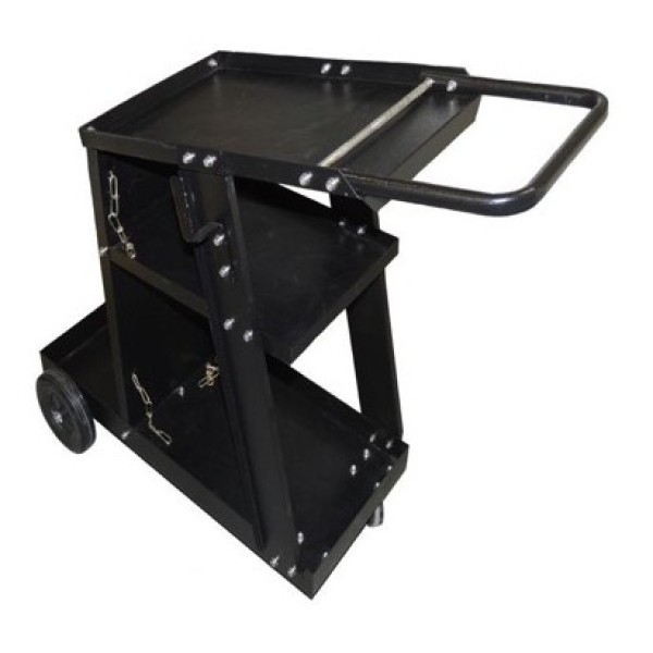 This welding cart has a robust steel construction. Featuring 3 black-painted shelves, it is an ideal choice to carry your workshop tools such as MIG welders, inverters, and welding accessories.