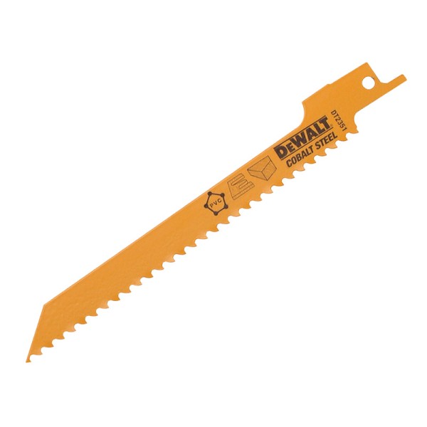 DEWALT Bi-Metal Reciprocating Blades for extreme applications, as well as demolition work. They have a bi-metal construction, combining a HCS body and cobalt-alloyed HSS cutting teeth for increased flexibility and durability.