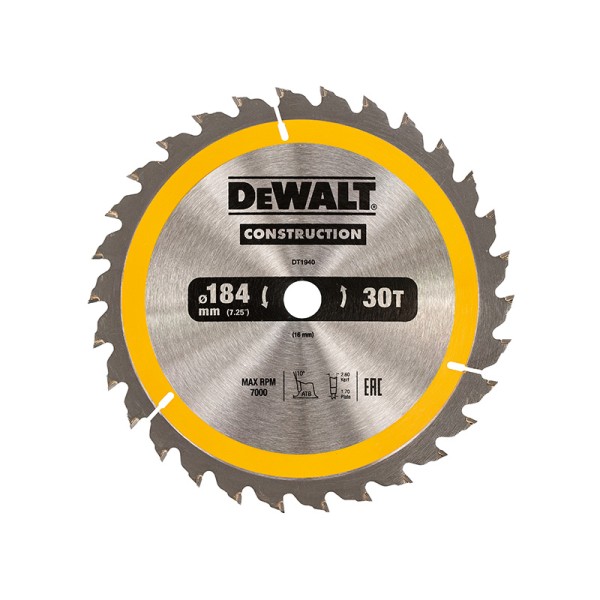 DEWALT Portable Construction Circular Saw Blade 184 x 16mm x 30T has been added to your cart
