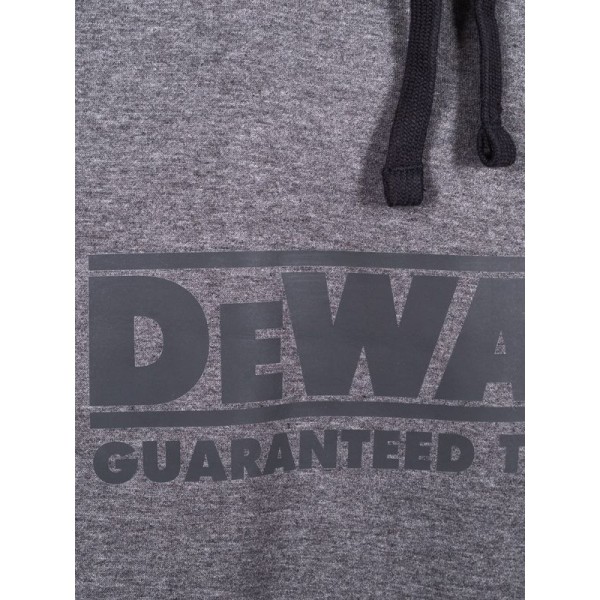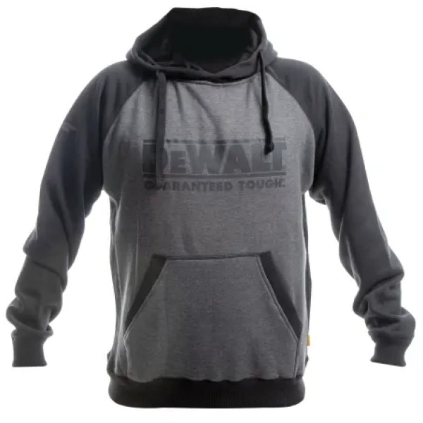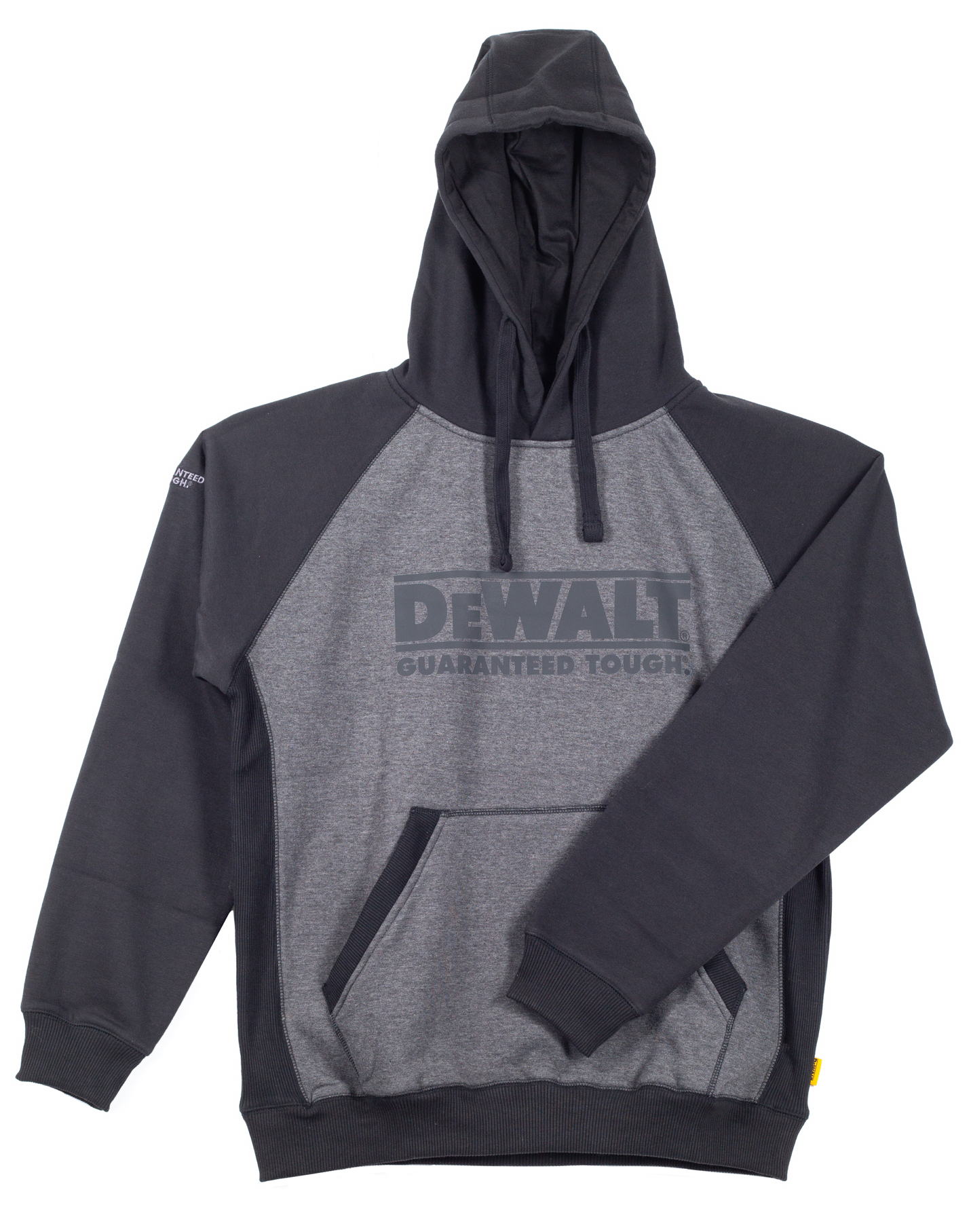 The DEWALT Stratford Hooded Sweatshirt is a warm garment, ideal for those colder days at work. It has a large kangaroo front pocket and draw corded hood. The design features a large DEWALT logo across the chest.
