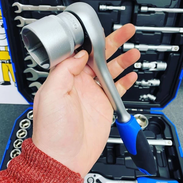 Six point socket made from chrome vanadium steel that's hardened and tempered with a satin finish. Supplied with a 72 tooth reversible soft grip ratchet and accessories. Packed in a plastic storage case.