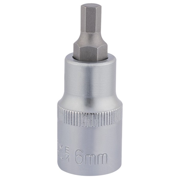 Expert Quality, socket fitted with a hexagonal bit, with an overall length of 55mm. All sockets manufactured from hardened and tempered chrome vanadium steel with sand blasted bits of S2 silicon steel. Each socket has a knurled ring for extra grip. Display packed.