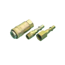 Quick release action coupler and male and female threaded adaptors, providing the user with maximum versatility. Display packed.