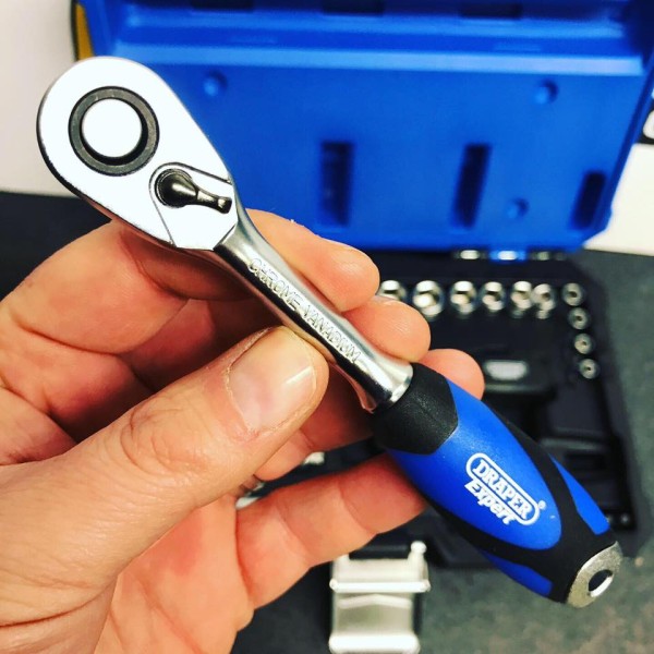 Expert Quality, six point sockets made from chrome vanadium steel that’s hardened and tempered with a micro satin finish. Each socket has a knurled ring for extra grip. Supplied with a 72 tooth reversible soft grip ratchet and accessories. Packed in tough plastic storage case.