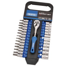 Six point sockets made from chrome vanadium steel that’s hardened and tempered with a satin finish. Supplied with a 72 tooth reversible soft grip ratchet and accessories. Packed in a plastic storage case.