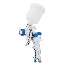 General purpose HVLP spray gun with aluminium body. Suitable for use with all paint types including water-based. Variable fan and fully adjustable flow. Spare nozzle, needle and cap sets are available - see table. Display carton.