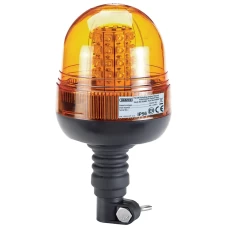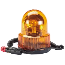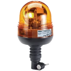 Spigot base rotating beacon, fully certified for use on road vehicles. Manufactured with a heavy-duty base attached to a transparent amber lens and fitted with a bright halogen bulb. Supplied with spigot connector for use on 12/24V vehicles fitted with power poles. Display packed.