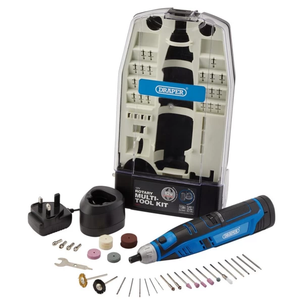 Draper 12V Rotary Multi-Tool Kit, 1 x 1.5Ah Battery, 1 x Fast Charger (50 Piece) (70298) has been added to your cart