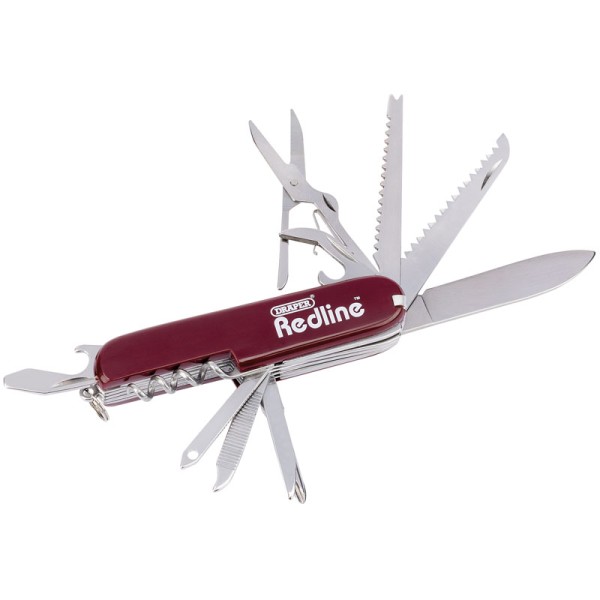 A multi-function pocketknife ideal for camping, fishing and other everyday situations. The functionality includes a penknife, screwdriver blade, scissors, tin opener, corkscrew and much more.