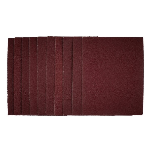 This pack of 1/4 sanding sheets (115 x 150mm) are made from premium quality aluminium oxide that is resin bonded to provide improved grain adhesion, anti-static qualities and long-lasting performance. The sheets are pre-cut to fit 1/4 sanders with clamping function (115 x 105mm). The heavy-duty E-Weight backing paper makes the sanding sheet more durable – able to withstand the toughest jobs. Ideal for sanding and finishing wood, metal, aluminium alloy, painted surfaces, plastic and fillers. Compatible with most 1/4 sanders.