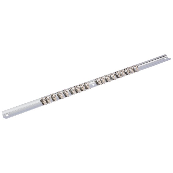 Socket retaining bars which can be wall mounted or used loose. Manufactured from carbon steel hardened and tempered with a polished finish. Clips made from nickel plated spring steel.