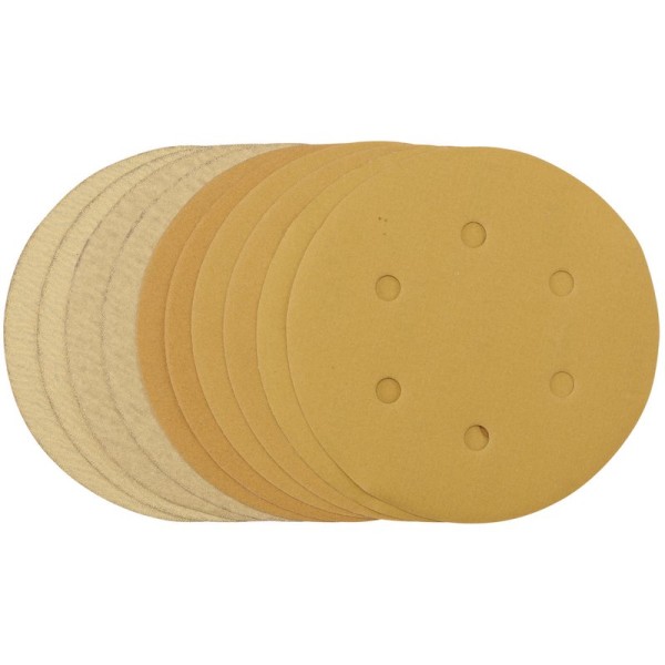 Draper 150mm Gold Sanding Discs with Hook & Loop - Assorted Grit - 120g, 180g, 240g, 320g, 400g (Pack of 10) has been added to your cart