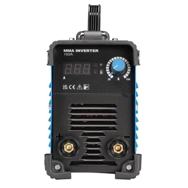 This MMA Inverter Welder is a compact efficient machine with built-in hot start, ARC force and anti-stick. The robust lightweight construction makes it portable, complete with carry handle. Supplied with an accessory kit including electrode holder, earth clamp, wire brush/chipping hammer and face mask.