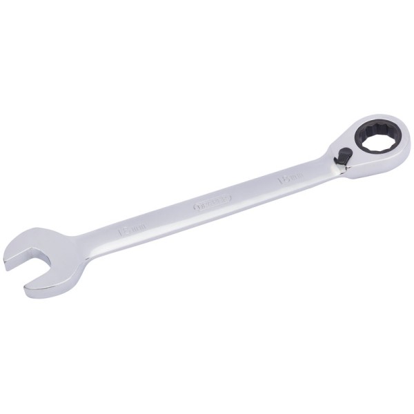 Open end set at 15°. Draper HI-TORQ® ratchet ring end offset at 15°. With forward/reverse direction changer on ring end - only 5° movement required to turn fastener, especially useful in confined spaces. Forged from chrome vanadium steel, hardened, tempered, chrome plated and fully polished throughout. Display packed.