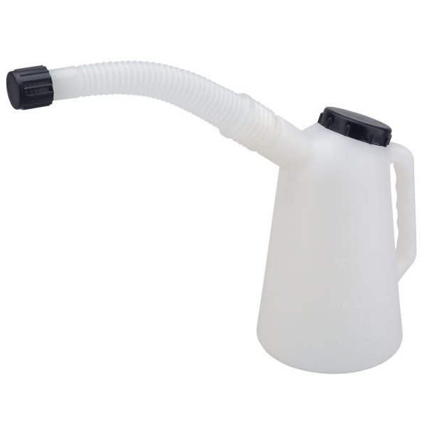 Manufactured from high-density polyethylene, which is resistant to diesel/petrol, oils and most acids. Fitted with a flexible spout and carrying handle and attached with a screw top lid. Inscribed with metric and imperial graduations on the jug body. All in all, an extremely practical measuring jug for a host of tasks performed by mechanics and vehicle technicians in workshops and garages.