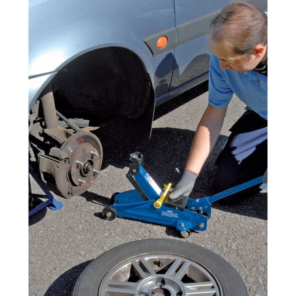 Compact, short chassis jack. Portable and compact design for easy storage. Large saddle aids positioning. Rear swivelling steel castors increase manoeuvrability. Safety valve prevents the jack from overloading. Supplied with a one piece handle.
