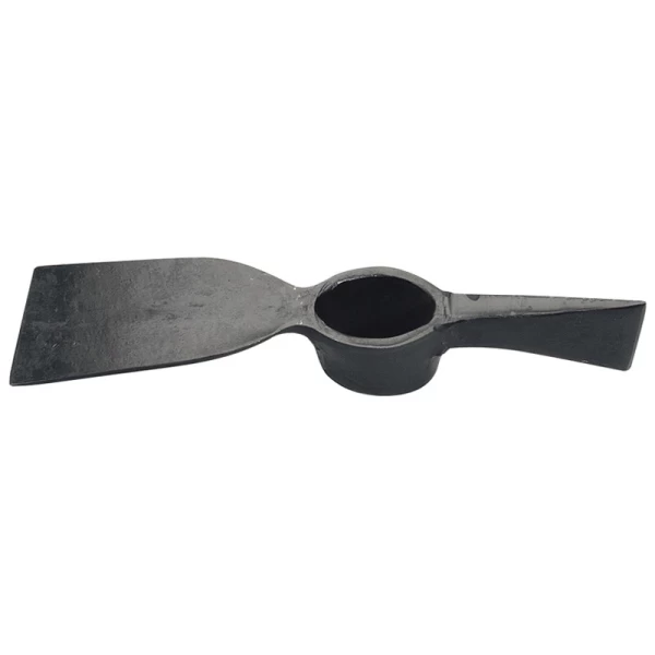 For chopping tree roots and digging heavy soil. Forged steel with 65mm chisel tip and 90mm wide blade. Eye size 70 x 50mm. Will accept standard pick axe shafts. Sold loose.