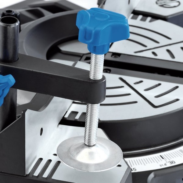 A 'D'shaped handle designed pull saw, providing quality and accuracy. The pull facility and depth stop allow the user to perform precise trenching operations. Other features include an integral dust extraction outlet and bag, extension wings, stop bar and laser beam cutting guide. The laser beam enables users to preview the saw blade path prior to cutting. The base is constructed from alu Minium, ideal for easy movement around a worksite or workshop. Fitted with a cable and approved plug. Supplied with hex. key, collection bag and a 40T T.C.T. saw blade.