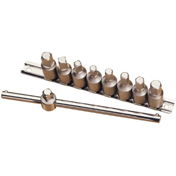 Chrome vanadium steel hardened and tempered. For use with 3/8" square drive accessories. Display packed.