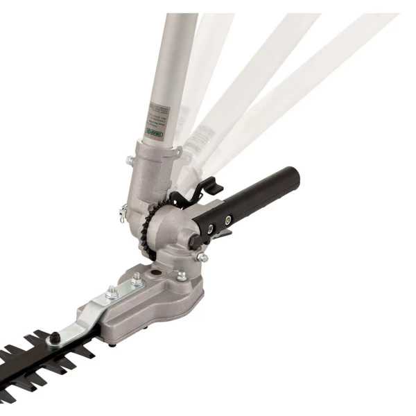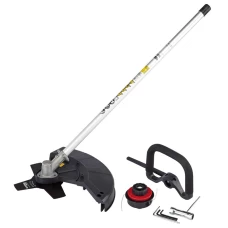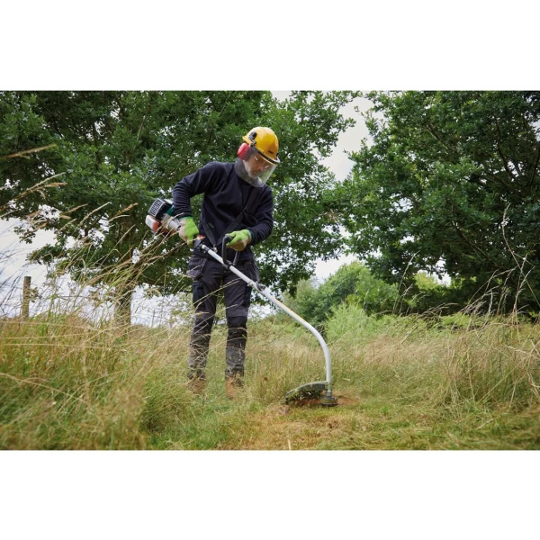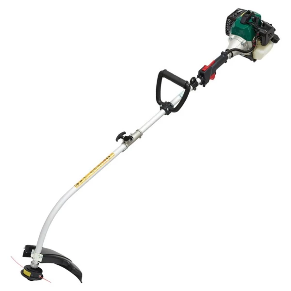 This 2-in-1 petrol garden power tool is equipped with two attachments for different tasks around the garden - grass trimming and hedge cutting. It is powered by a 33cc 2-stroke engine with choke and recoil start for simple operation. There is a on/off switch with safety throttle lever and lock-on for easier starting. The hedge cutter attachment has 440mm long dual-action blades that are perfect for cutting branches, up to 22mm thick, and tackling hard-to-reach areas. The grass trimmer attachment has a 'Tap and Go' line feed, which efficiently cuts through overgrown grass, weeds and light brush. Lightweight for comfortable use, with an adjustable D-type soft grip handle for better control. It has a split-shaft design for convenient storage and transportation. Fitted with a single strap shoulder harness with a quick release mechanism. Compatible with E10 fuel.