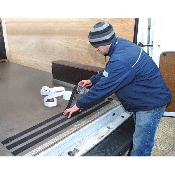 Heavy duty self adhesive grip tape to help prevent slips and falls. Able to withstand long and arduous use on steps, ladders and slippery outdoor surfaces. Shrink wrapped in singles with label.