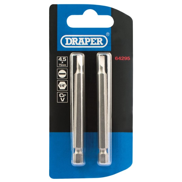 Draper 4.5mm 1/4" Hex Plain Slot Insert Bit 75mm Long X 2 has been added to your cart