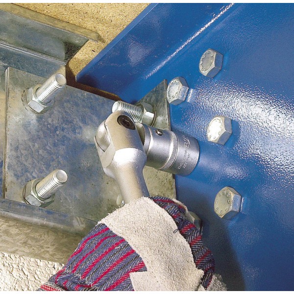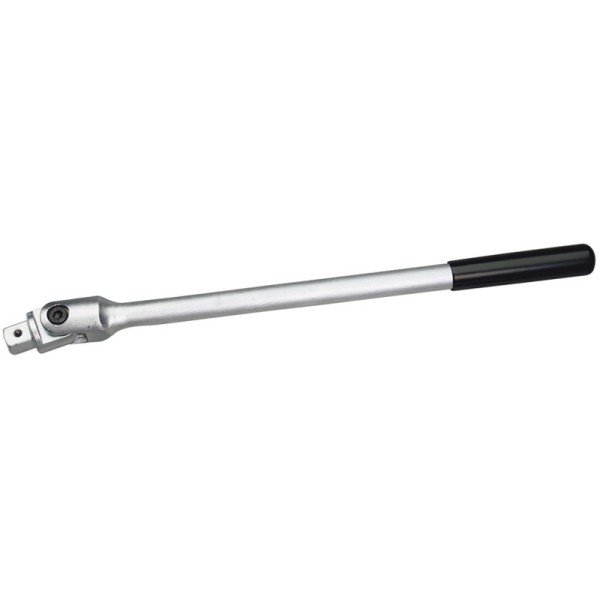 Professional Quality, manufactured from chrome vanadium steel hardened, tempered and chrome plated for corrosion protection. Hand grip. Hinged joint head and positive end stops at 0° and 90°. Overall length 500mm. With locking pin for secure socket holding. Sold loose.