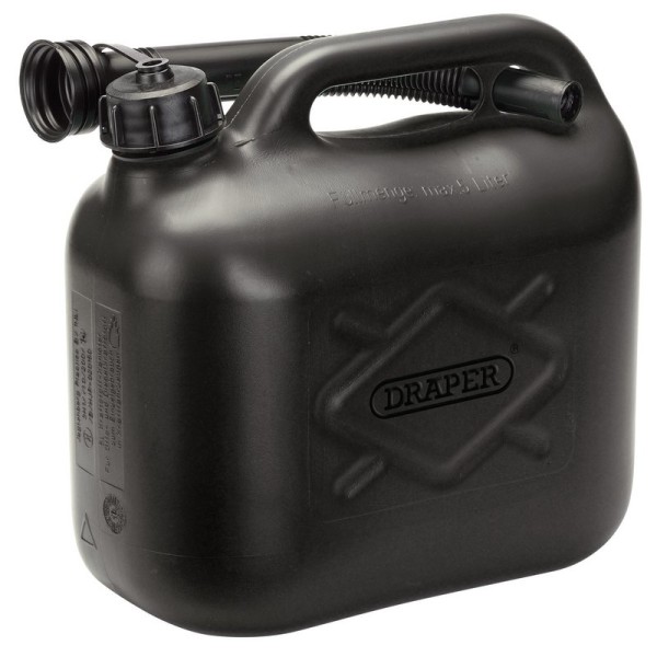 This five litre UN-certified fuel can is manufactured from high-quality virgin HDPE plastic. It's suitable for storing in a vehicle or in the garage, and its black colour makes it ideal for use with diesel fuel. Supplied with a tethered flexible spout for controlled flow. Also available in green for colour-coded use with unleaded fuel (Stock No. 09052).