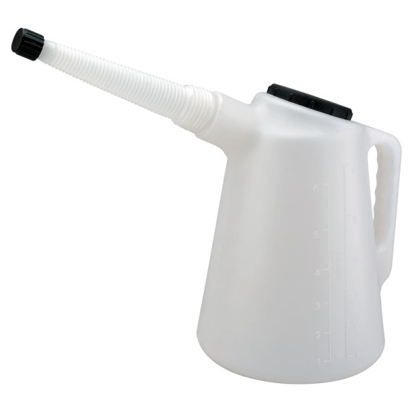 Manufactured from high-density polyethylene, which is resistant to diesel/petrol, oils and most acids. Fitted with a flexible spout and carrying handle and attached with a screw top lid. Inscribed with metric and imperial graduations on the jug body. All in all, an extremely practical measuring jug for a host of tasks performed by mechanics and vehicle technicians in workshops and garages.