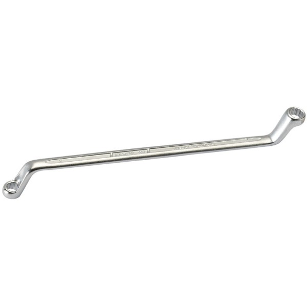 Professional Quality, long series manufactured from chrome vanadium steel hardened, tempered and chrome plated for corrosion protection. Ring ends are accurately broached with chamfered bi-hexagon profiles for easy nut location and are offset at 45°. Sold loose.