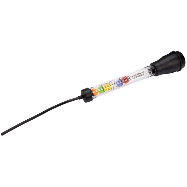 For testing ethylene glycol anti-freeze density. The six floating discs enable accurate reading in both celsius and fahrenheit. Suitable for testing both hot and cold coolant strengths.
