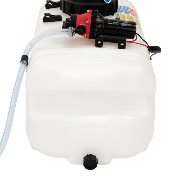 This spot sprayer can be securely mounted to any all-terrrain vehicle (ATV) using the tank tie down straps. The high density polyethylene (HDPE) tank has a 37L capacity and is equipped with a powerful diaphragm pump. There is one lance for handheld spot spraying using the trigger. There are two spray patterns - stream and cone and a remote switch for easy operation. This ATV sprayer is ideal for applying fertilisers, weed killers and de-icers.