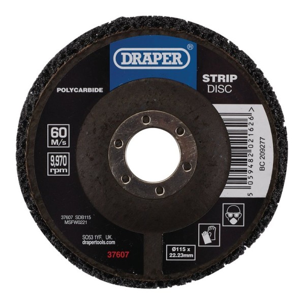 Draper Black Polycarbide Strip Disc 115mm, 22.23mm (180 Grit) has been added to your cart