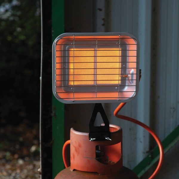 This portable gas bottle mounted heater is ideal for heating areas up to 80m². Durable Grade A ceramic plates are fixed to a steel tubular bottle clamp, to securely mount onto the rim of the propane cylinder. It is simple to use and the direction of heat can be altered by adjusting the angle of the stand. There are two power settings (low and high) allowing adjustable heat control of between 10,250-15,354 BTU (3-4.5kW). There is a gas safety valve installed, so if the heater does not light - the gas immediately shuts off. It is supplied with a 90º hose connector, regulator and 700cm hose. Designed for use with propane cylinders of 7-15kg gas capacity (available separately).