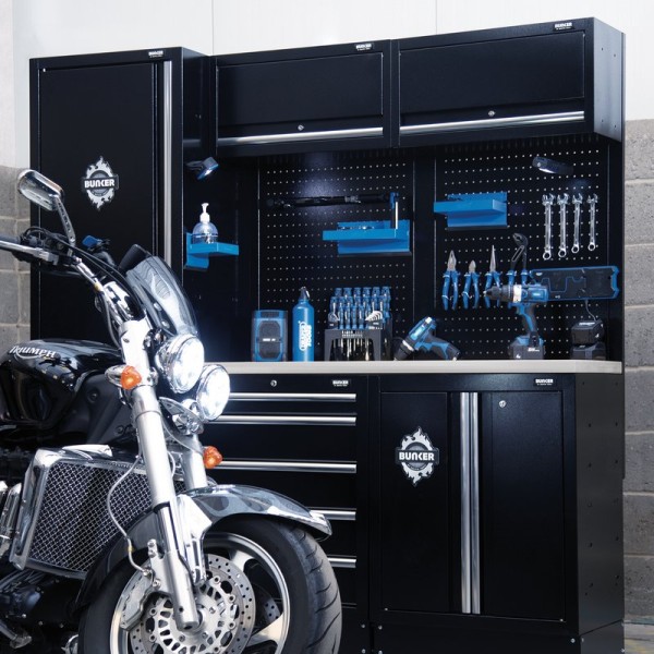 Part of the BUNKER® modular storage system. This stunningly designed premium-quality tall steel cabinet has a single door for easy access. Inside it are four fully adjustable shelves to create incredibly versatile storage. The feet of the cabinet are adjustable for optimal positioning on an uneven floor. The cabinet’s matt black textured finish is highly durable, thanks to the industrial powder coating that protects against scratches, wear and corrosion. There is an integral lock for security and two keys are supplied. The cabinet requires assembly and measures W 600 x H 2,000 x D 458mm. It can be used as an individual storage cabinet or as part of the BUNKER® modular storage system, which includes 24 clever modular options. It comes supplied with all the required fittings for simple installation. For your quality assurance, all BUNKER® units include a 10-year warranty.