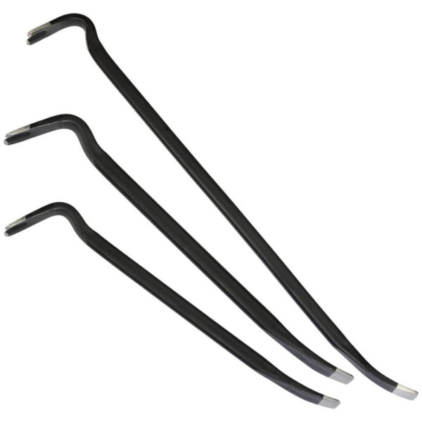 Ideal for heavy duty building site work i.e. demolition, dismantling timber work etc. Forged carbon steel chemically blacked with chisel end and swan neck.