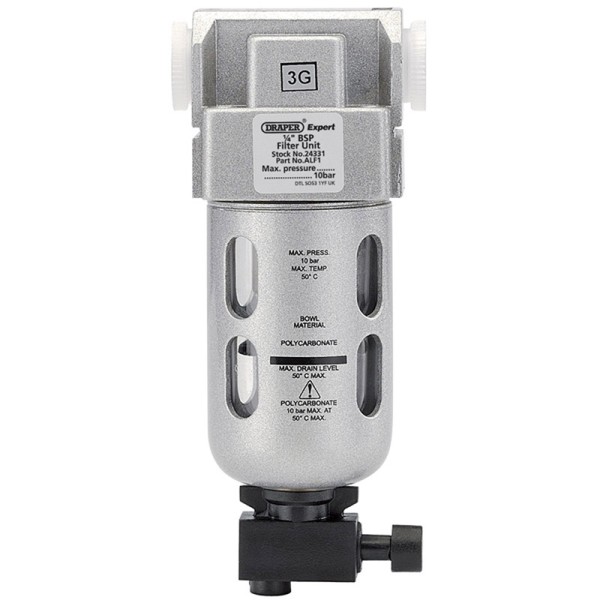 Expert Quality, cleans and dries compressed air. Manual/Semi automatic drain with 10 micron filter. Maximum inlet pressure 10bar/145psi. Display carton.