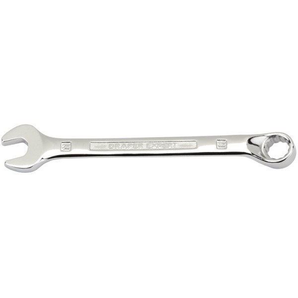 Expert Quality, with Draper Expert HI-TORQ® deep offset ring end cranked at 15°. Open end set at 15°. Long pattern forged from chrome vanadium steel, hardened, tempered, chrome plated and fully polished throughout. Display packed.