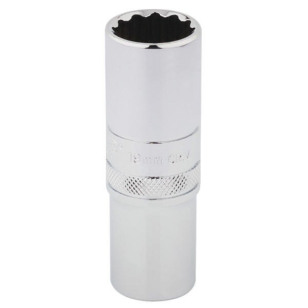 Expert Quality, 12 point deep sockets manufactured from chrome vanadium steel that's hardened and tempered with a polished finish. Each socket has a knurled ring for extra grip. Display packed.