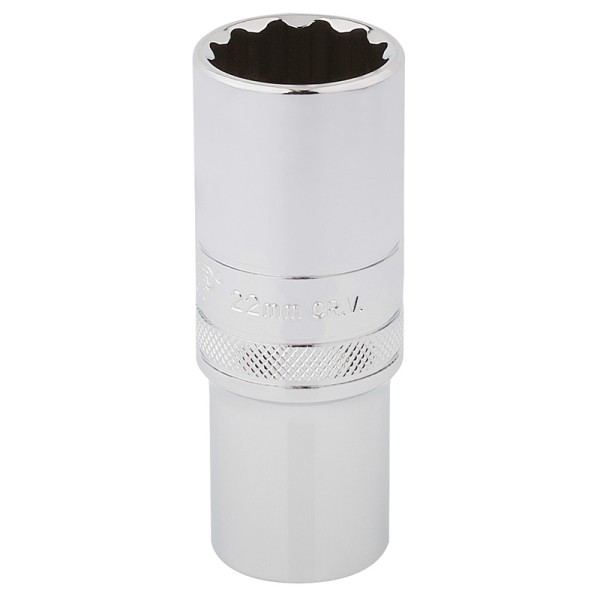 Expert Quality, 12 point deep sockets manufactured from chrome vanadium steel that's hardened and tempered with a polished finish. Each socket has a knurled ring for extra grip. Display packed.