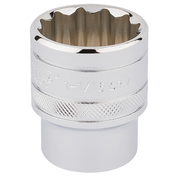 Expert Quality, 12 point sockets manufactured from chrome vanadium steel that's hardened and tempered with a polished finish. Each socket has a knurled ring for extra grip. Display packed.