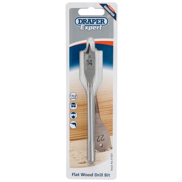 Expert Quality, flat wood drill bits manufactured from hardened and tempered carbon steel. Display packed.
