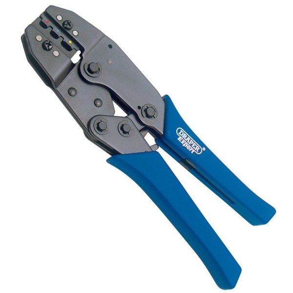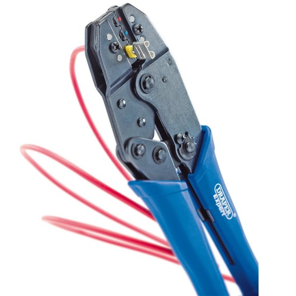 Expert Quality, carbon steel with hardened and tempered jaws. Continuous crimping at pre-set tension ensures accurate crimp. Chemically blackened finish with PP grips. Suitable for crimping insulated terminals as follows: - red channel: 0.5 - 1.00mm, blue channel: 1.5 - 2.5mm and yellow channel: 4.0 - 6.0mm.