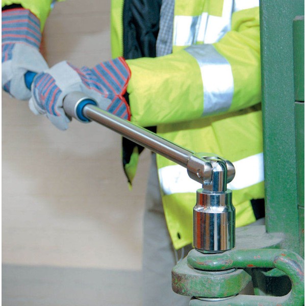 Expert Quality, head and shaft manufactured from chrome vanadium steel hardened, tempered and chrome finish for corrosion protection. 180° hinged joint head. Pull back collar with knurled ring allows handle to extend from 510 (minimum) to 770mm (maximum). Extending handle locks in three positions. Spring-loaded ball bearing for secure socket holding. Carton packed.