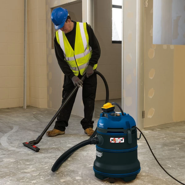 Manufactured to fully comply with the 'M' class standard and fitted with an automatic filter cleaner that vibrates after use, maintaining filter permeability and achieving 99.9% dust removal in line with HSE recommendations. Each vacuum is fitted with an auto start/stop plug socket, which automatically switches off and on by use of the power tools on/off button. The low 68-decibel noise level, 35L capacity, powerful Amiteck motor and full bag indicator all unite to create a vacuum designed with the user in mind delivering a superior user experience. Supplied with the following, Cartridge filter, Foam filter, Paper dust bag, 1 x plug socket, 3M flexible hose with hand grip and air control, Two extension tubes, Floor brush, Carpet attachment with fluid insert, Crevice nozzle