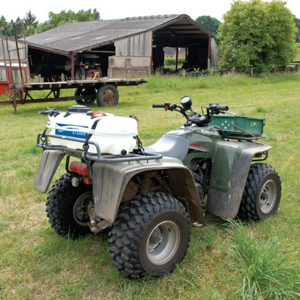 Mounts to any all terrain vehicle (ATV). Spray pump powered by external 12V battery* or via the ATV 12V electrical supply. The pressure activated diaphragm pump produces a smooth flow from the tank. Trigger operated lance with heavy droplet pattern for Minimal spray drift in windy conditions. The tank is manufactured from special chemical resistant polymers for extra long life. Can be used for spraying fertilizer, weed killer, de-icer and ethylene glycol products. Supplied with switch for remote operation. *not supplied.