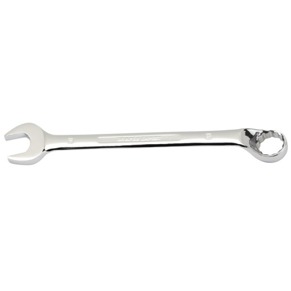 Expert Quality, with Draper Expert HI-TORQ® deep offset ring end cranked at 15°. Open end set at 15°. Long pattern forged from chrome vanadium steel, hardened, tempered, chrome plated and fully polished throughout. Display packed.