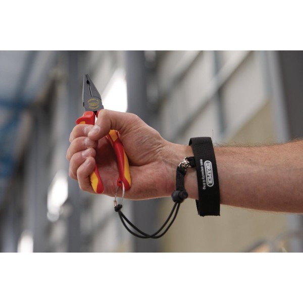 Expert quality XP1000®, manufactured from premium steel forged in Germany. Induction-hardened jaws provide better gripping performance and an effortless clean cutting edge. The precision-machined pivot pins allow smooth one-handed operation with minimum play for ease of use. A two-part bi-material ergonomic soft grip handle allows maximum grip and user comfort, and horns prevent slipping onto live conductors. Tested to 10,000V, these pliers are suitable for working on live circuits of 1,000V AC and 1,500V DC. The handle also incorporates a tethered fixing solution to comply with Work at Height Regulations (lanyard Stock No. 82474 and wrist strap Stock No. 03470 sold separately).