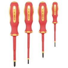 FEATURES: Manufactured and individually certified to EN 60900Expert quality XP1000 4mm x 100mm Plain Slot VDE screwdriver, individually tested to ensure it fulfils the EN 60900 requirements. The EN 60900 requirements compel all tools to be tested to 10kV, making them suitable for working on live AC circuits of up to 1kV and DC circuits of up to 1.5kV. The blades on the screwdrivers are manufactured from SVCM+ alloy steel, hardened, tempered and chemically blackened, with a deep-set blade shea..