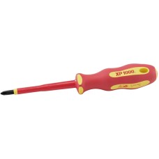 FEATURES: Manufactured and individually certified to EN 60900Expert quality XP1000 No.2 x 100mm Cross Slot VDE screwdriver, individually tested to ensure it fulfils the EN 60900 requirements. The EN 60900 requirements compel all tools to be tested to 10kV, making them suitable for working on live AC circuits of up to 1kV and DC circuits of up to 1.5kV. The blades on the screwdrivers are manufactured from SVCM+ alloy steel, hardened, tempered and chemically blackened, with a deep-set blade she..